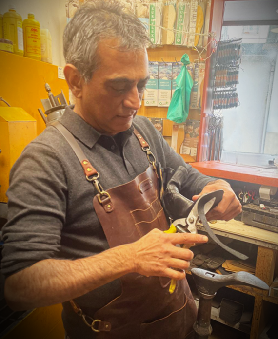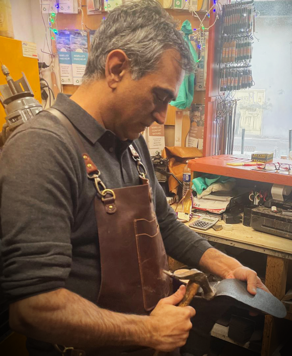 Depuis 30 ans, je mets tout mon savoir-faire de cordonnier, reconnu par un Brevet de Maîtrise, au service de vos chaussures et articles en cuir. Avec rigueur et passion, je restaure, répare, entretient et redonne vie à vos paires, pour qu’elles durent.
